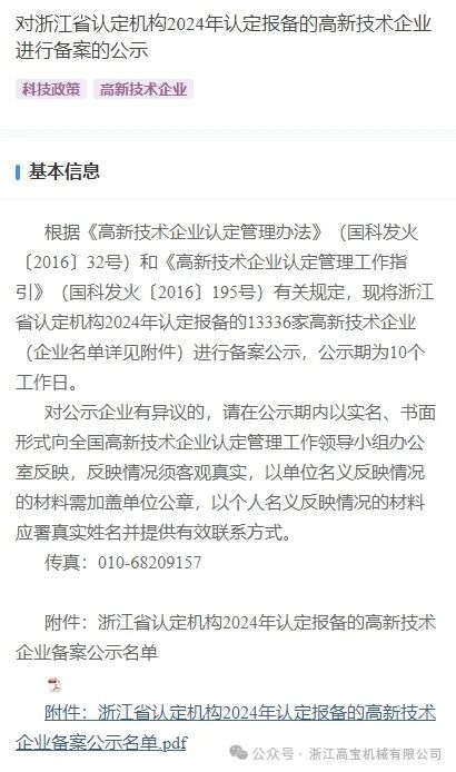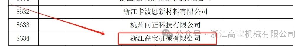 浙江高寶機(jī)械有限公司通過省認(rèn)定機(jī)構(gòu)2024年認(rèn)定報(bào)備的高新技術(shù)企業(yè)